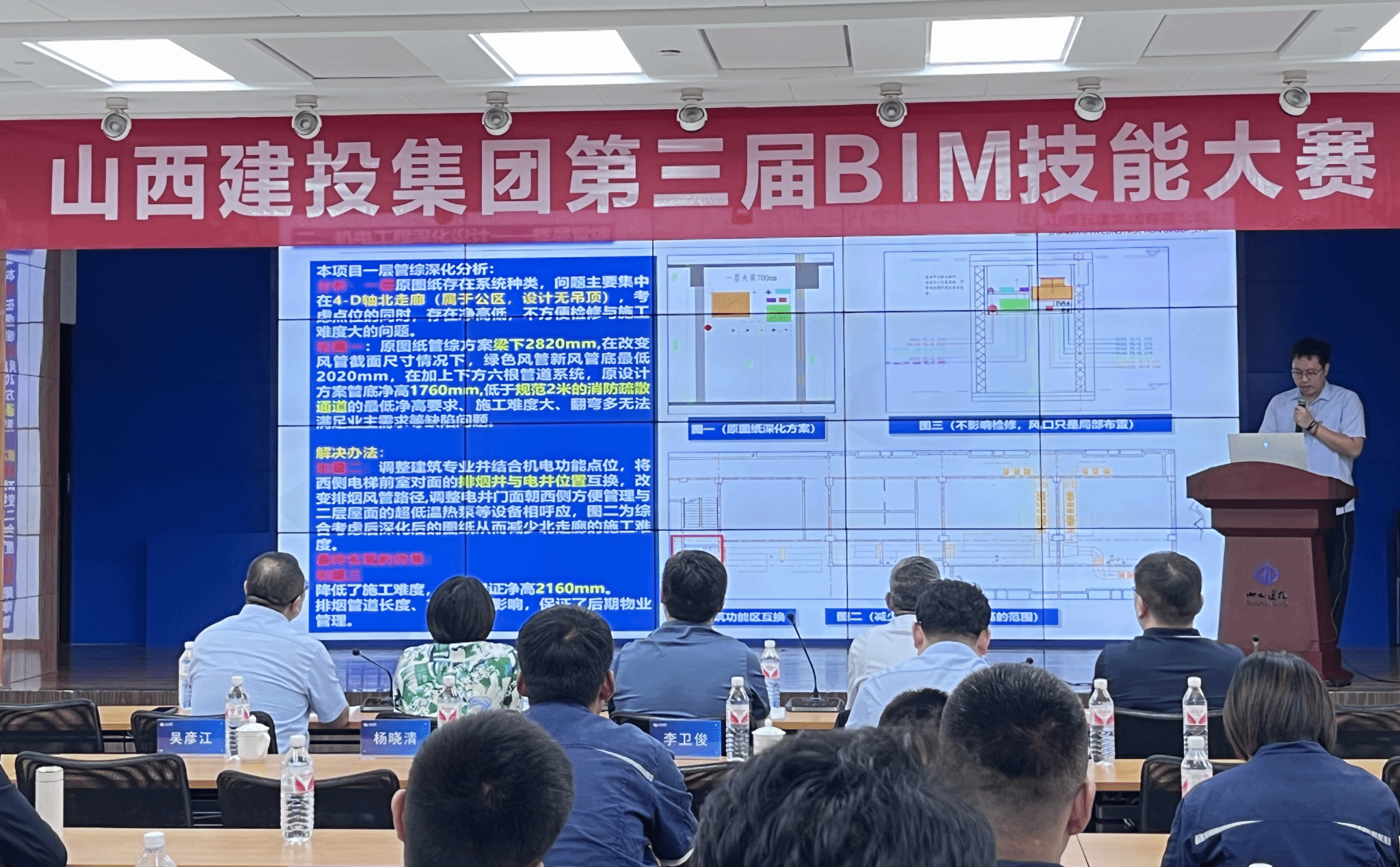 本次整体角逐包括小组效果展示、现场提问等环节,,,,,,集团公司参赛团队从BIM应用配景及基础应用、通例BIM手艺落地应用、立异BIM手艺落地应用、BIM应用总结及展望四个方面举行详细叙述,,,,,,精彩的展收得阵阵掌声。。。。。。。