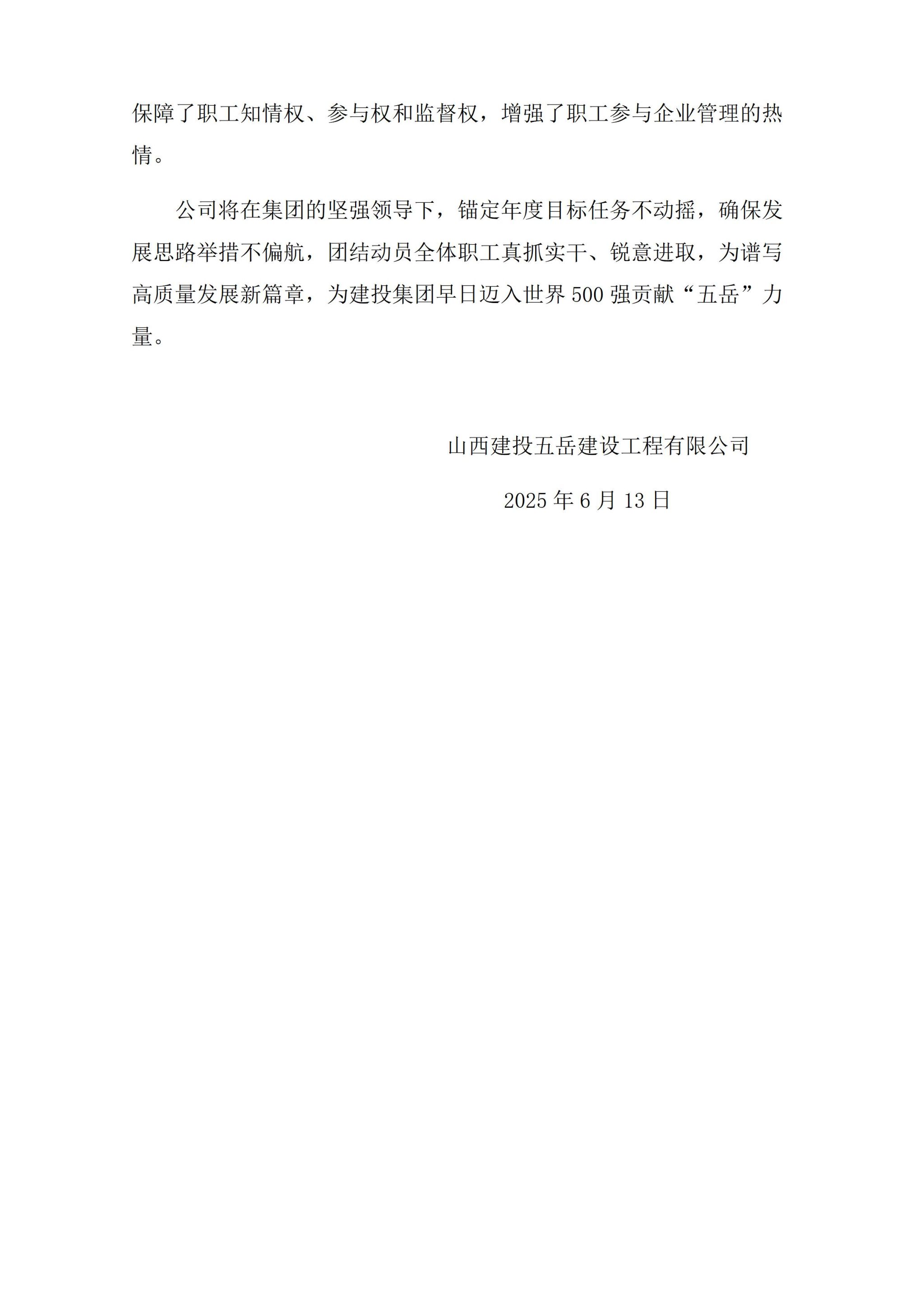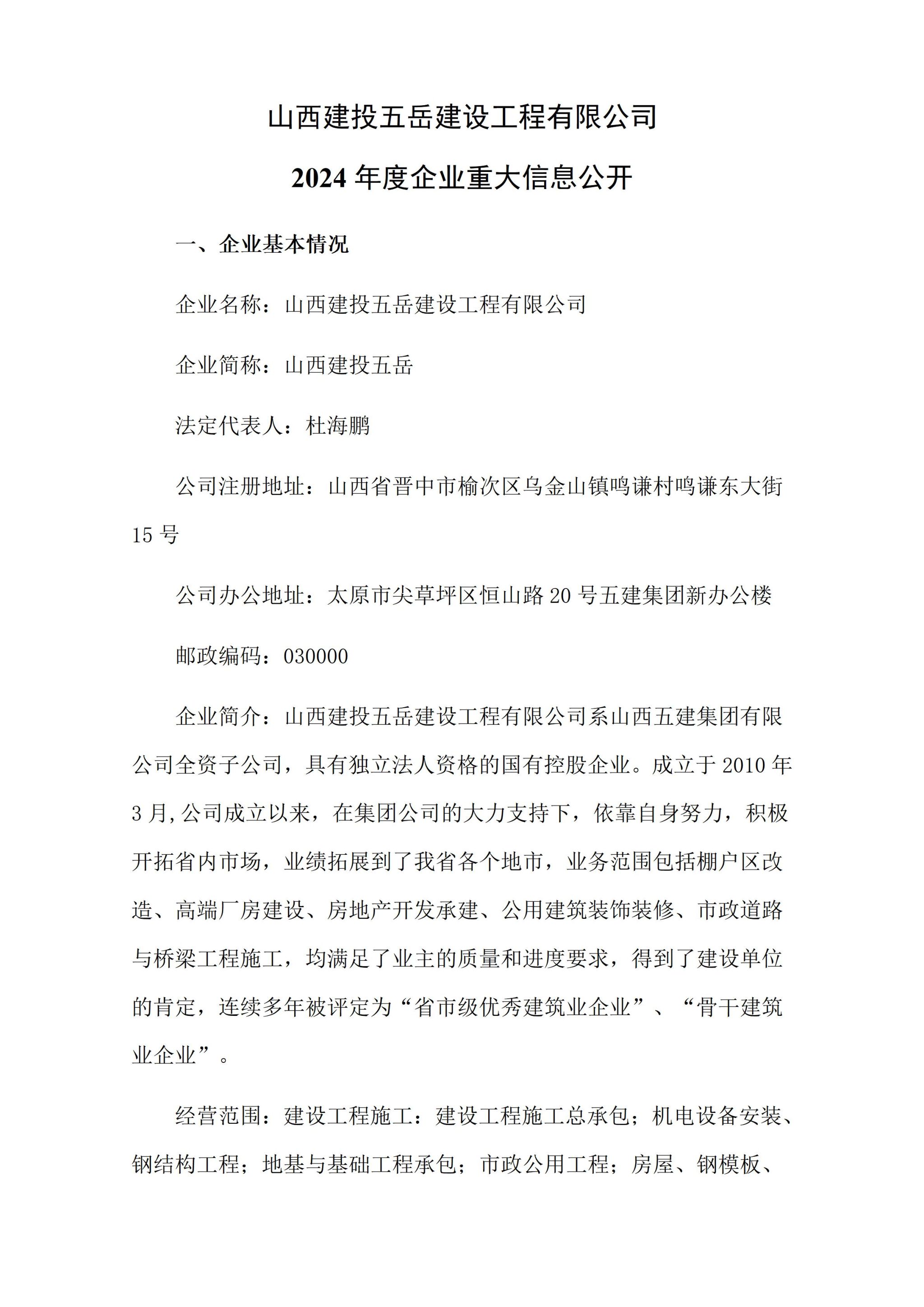 山西建投五岳建设工程有限公司2024年度企业重大信息果真