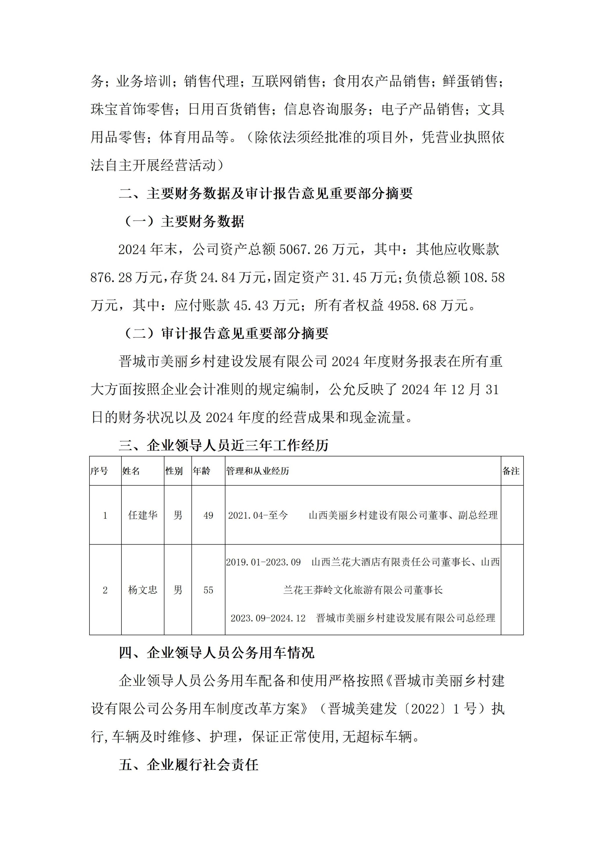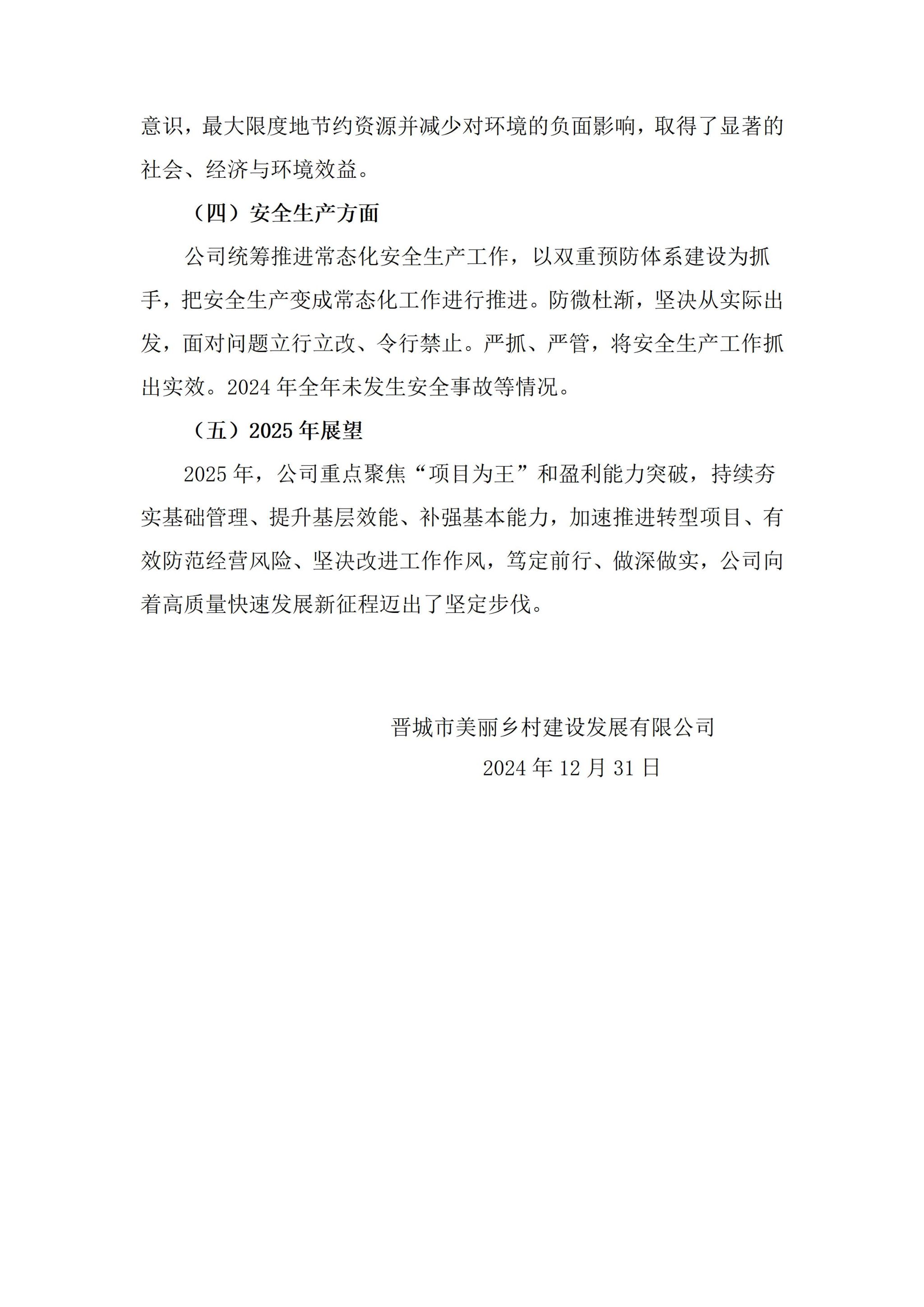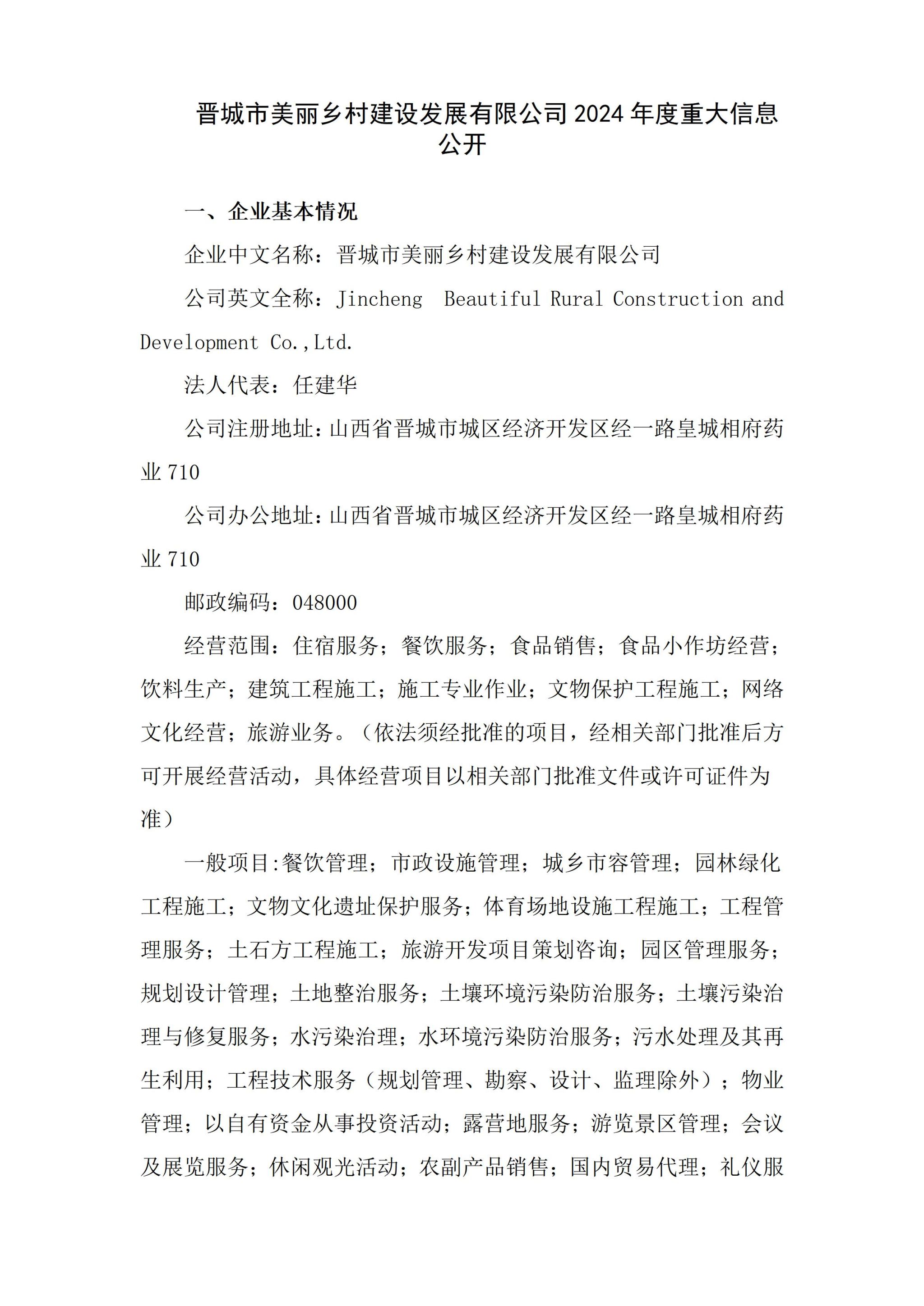 晋都会漂亮墟落建设生长有限公司2024年度企业重大信息果真