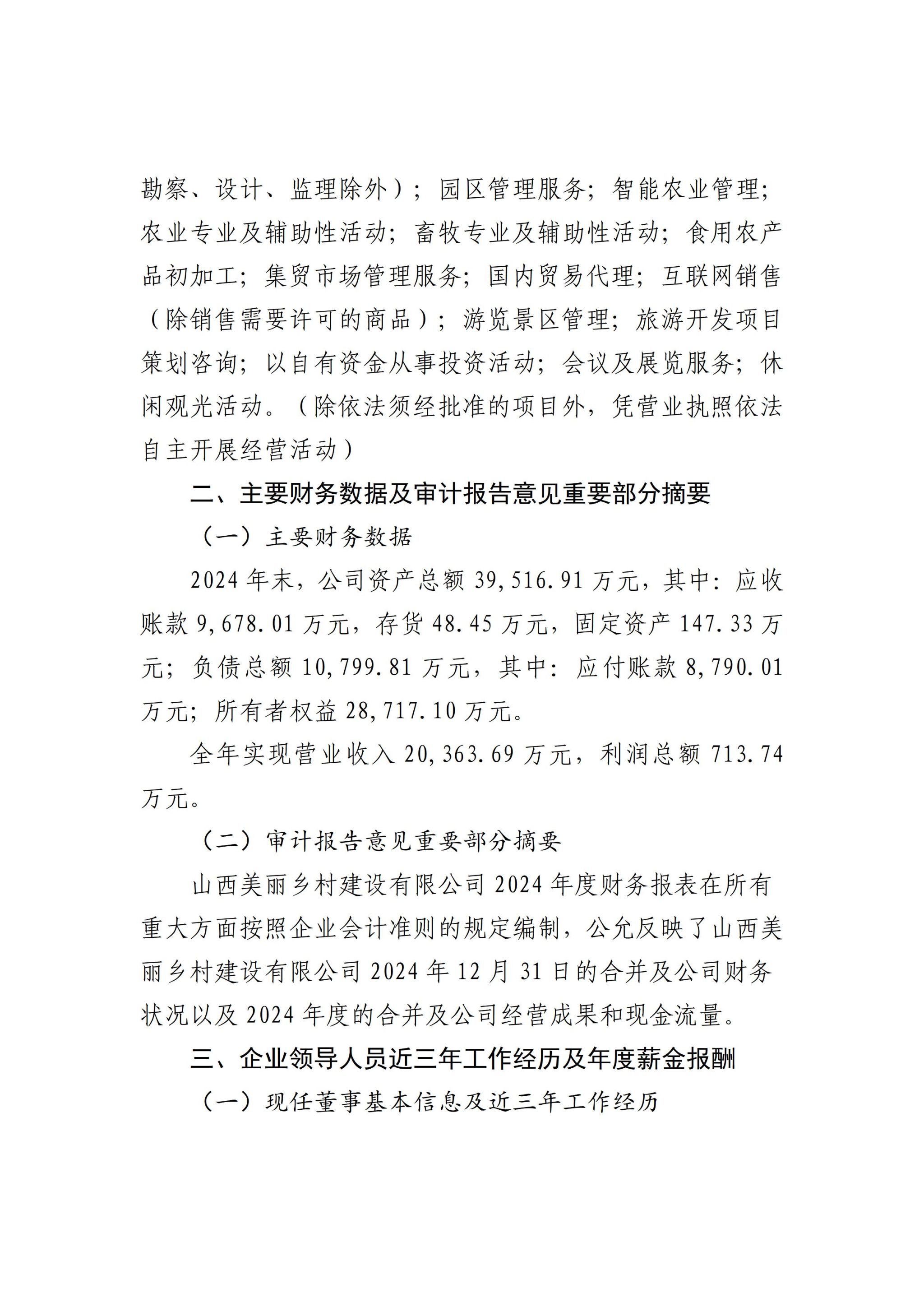 山西漂亮墟落建设有限公司2024年度重大信息果真
