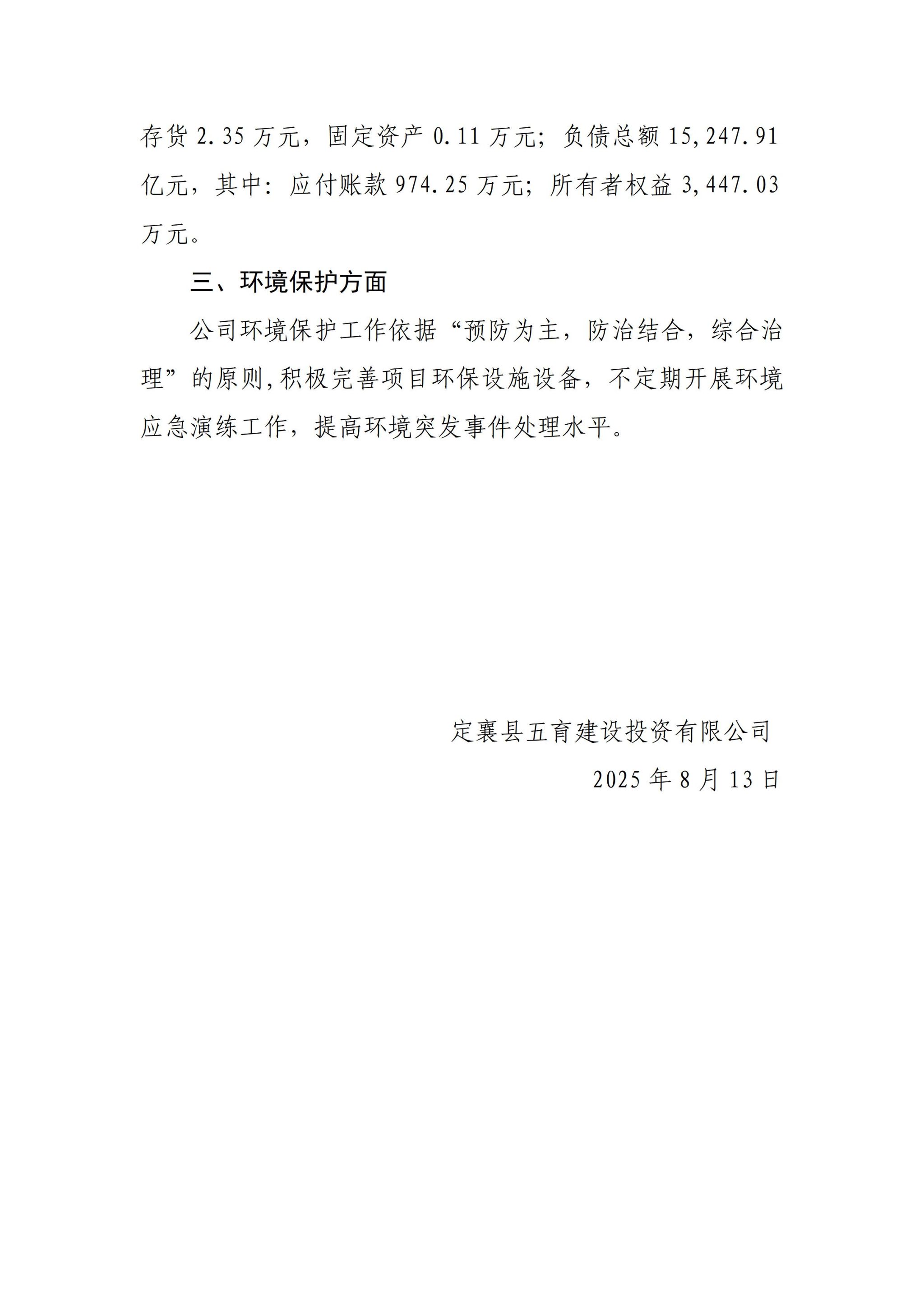 定襄县五育建设投资有限公司2025年二季度企业重大信息果真