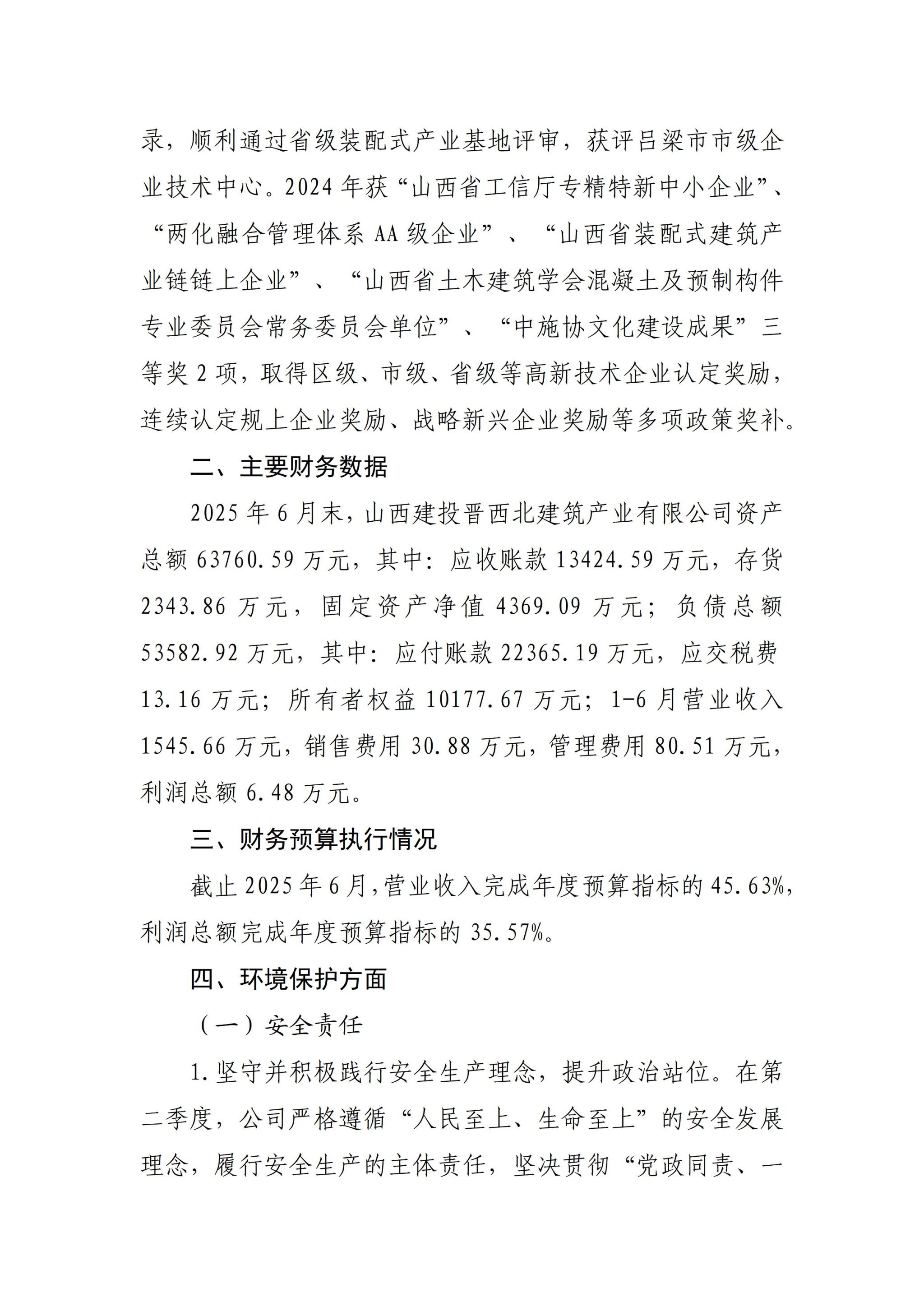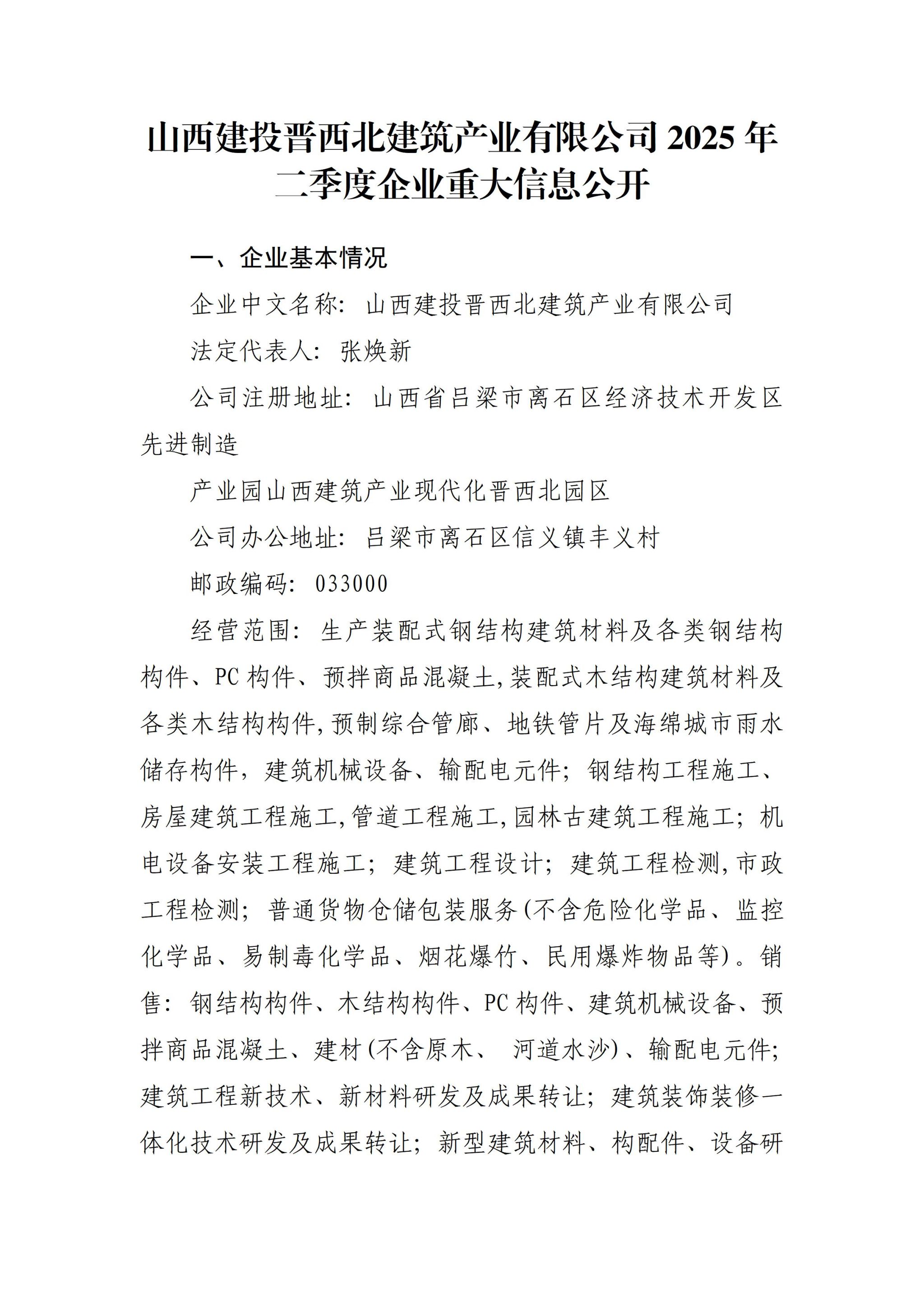 山西建投晋西北修建工业有限公司2025年二季度重大信息果真