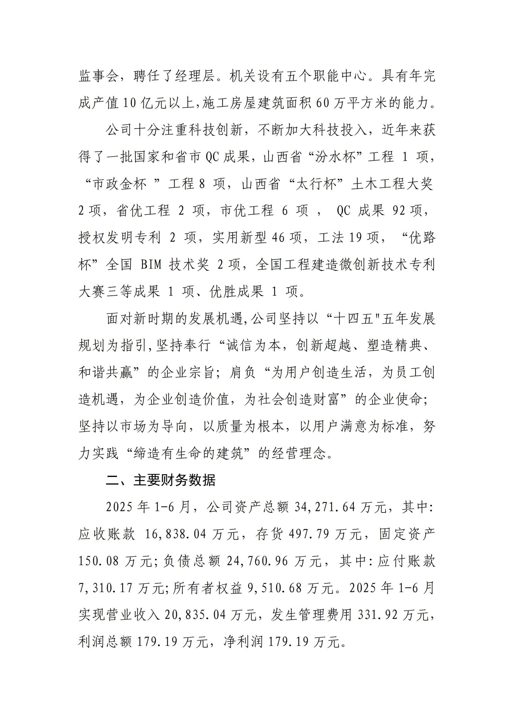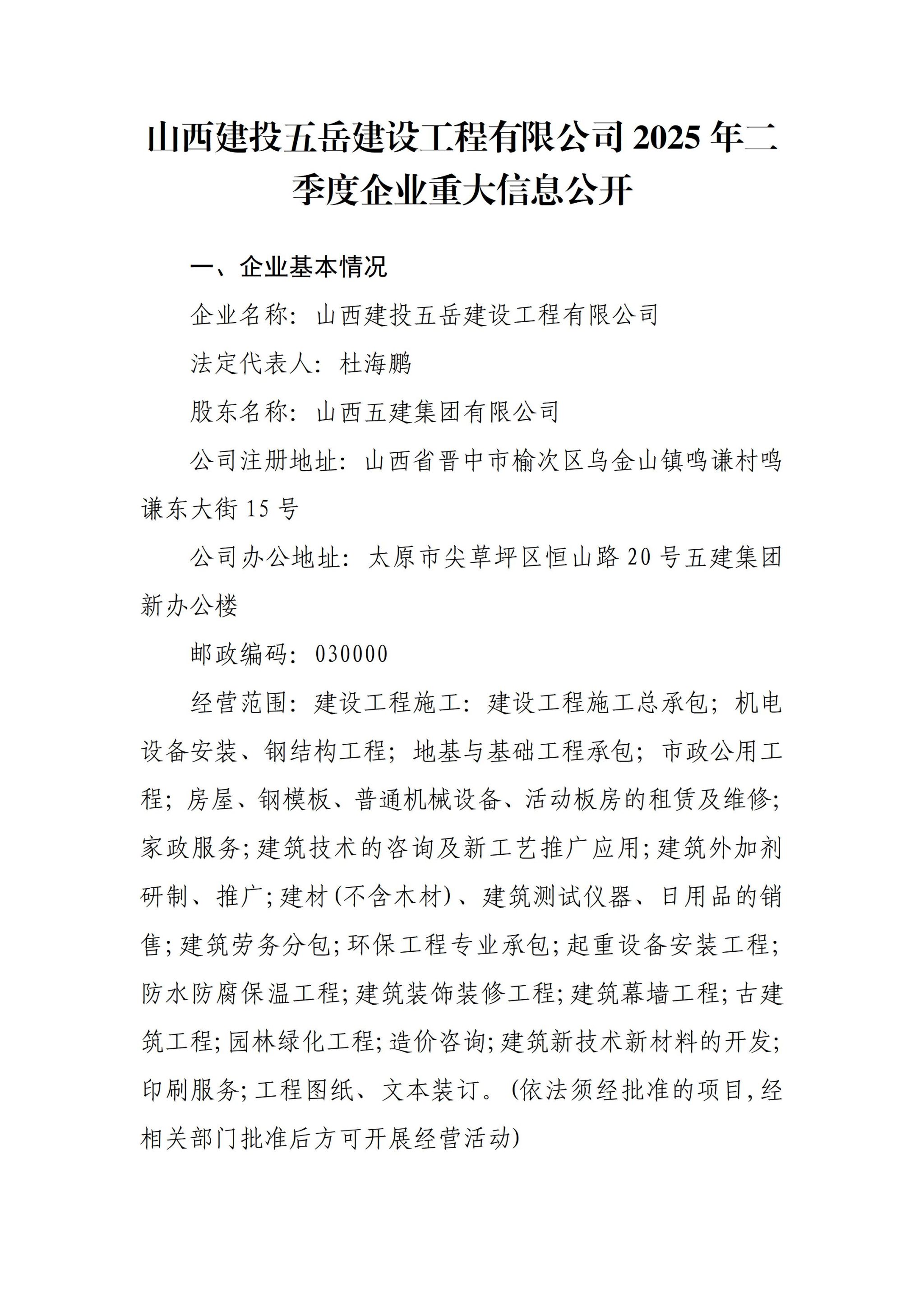 山西建投五岳建设工程有限公司2025年二季度企业重大信息果真
