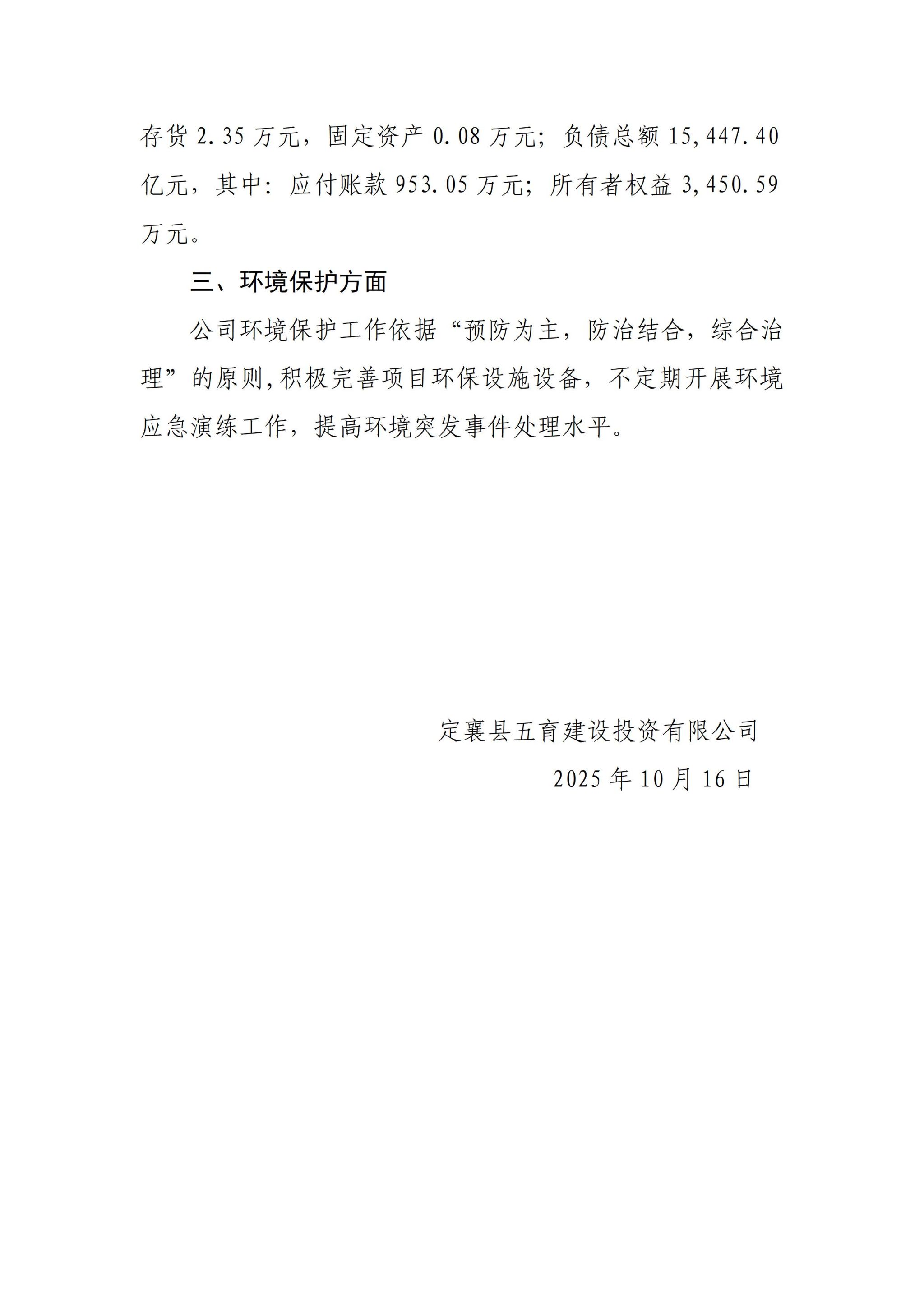 定襄县五育建设投资有限公司2025年三季度企业重大信息果真