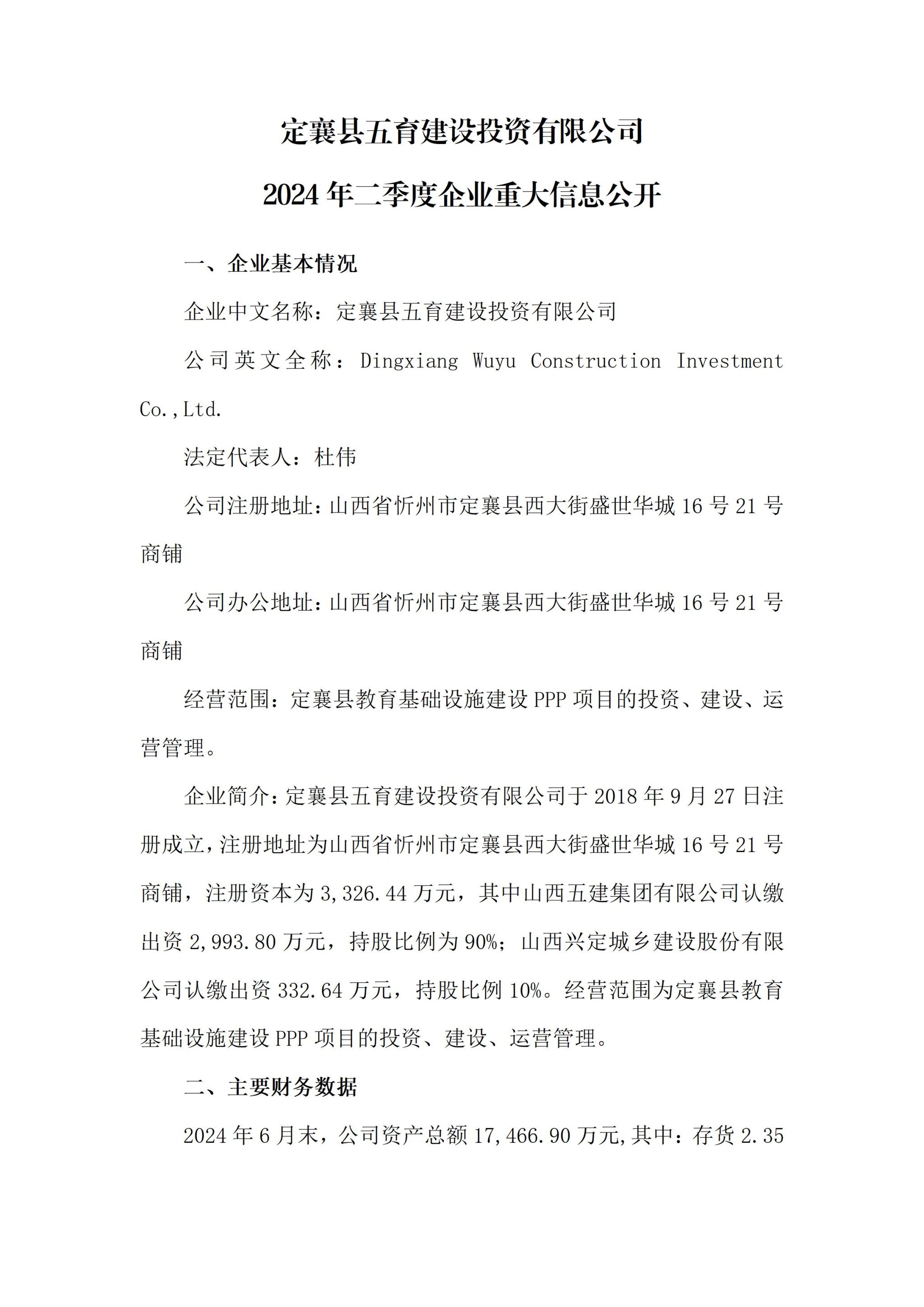 定襄县五育建设投资有限公司2024年二季度企业重大信息果真