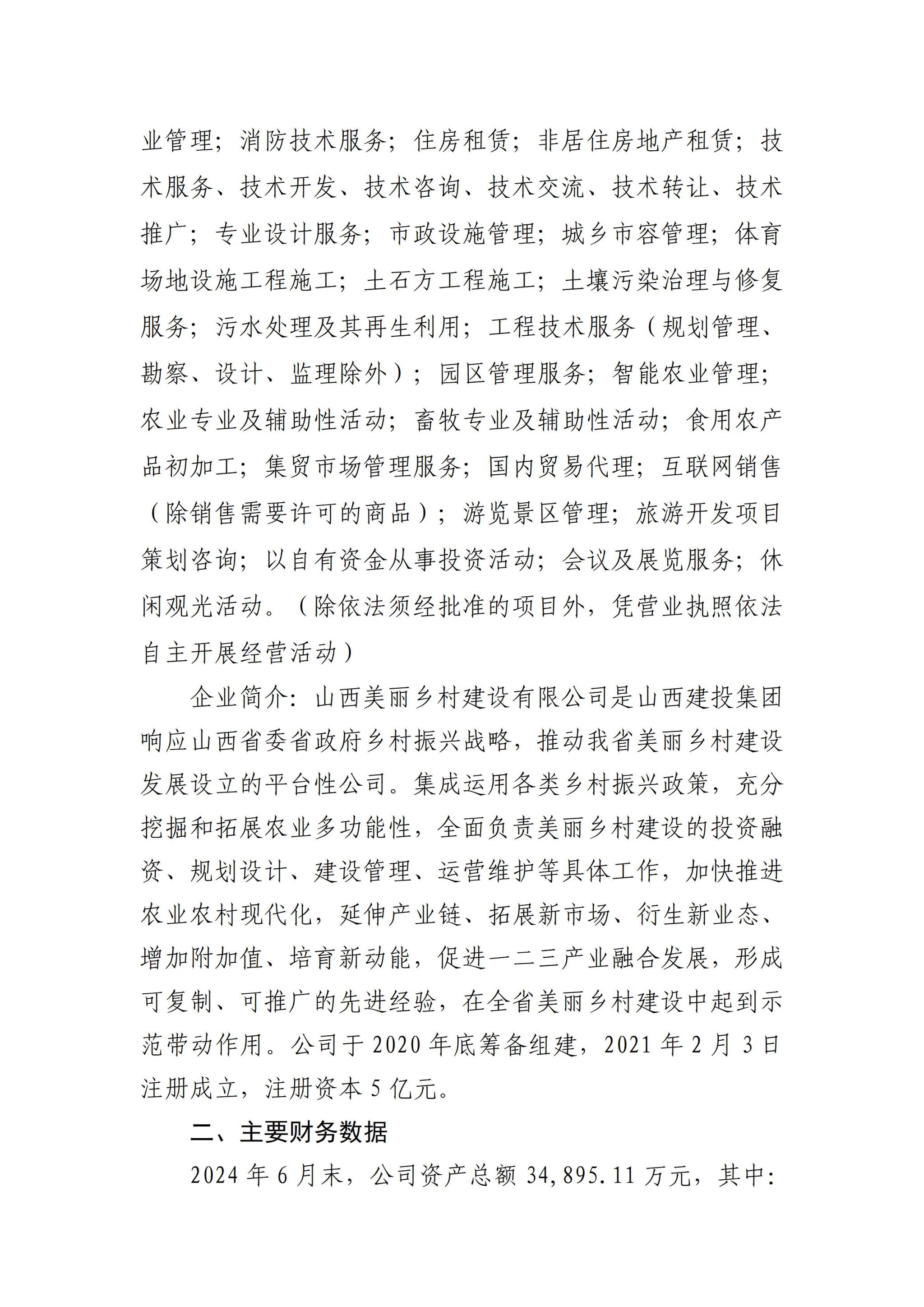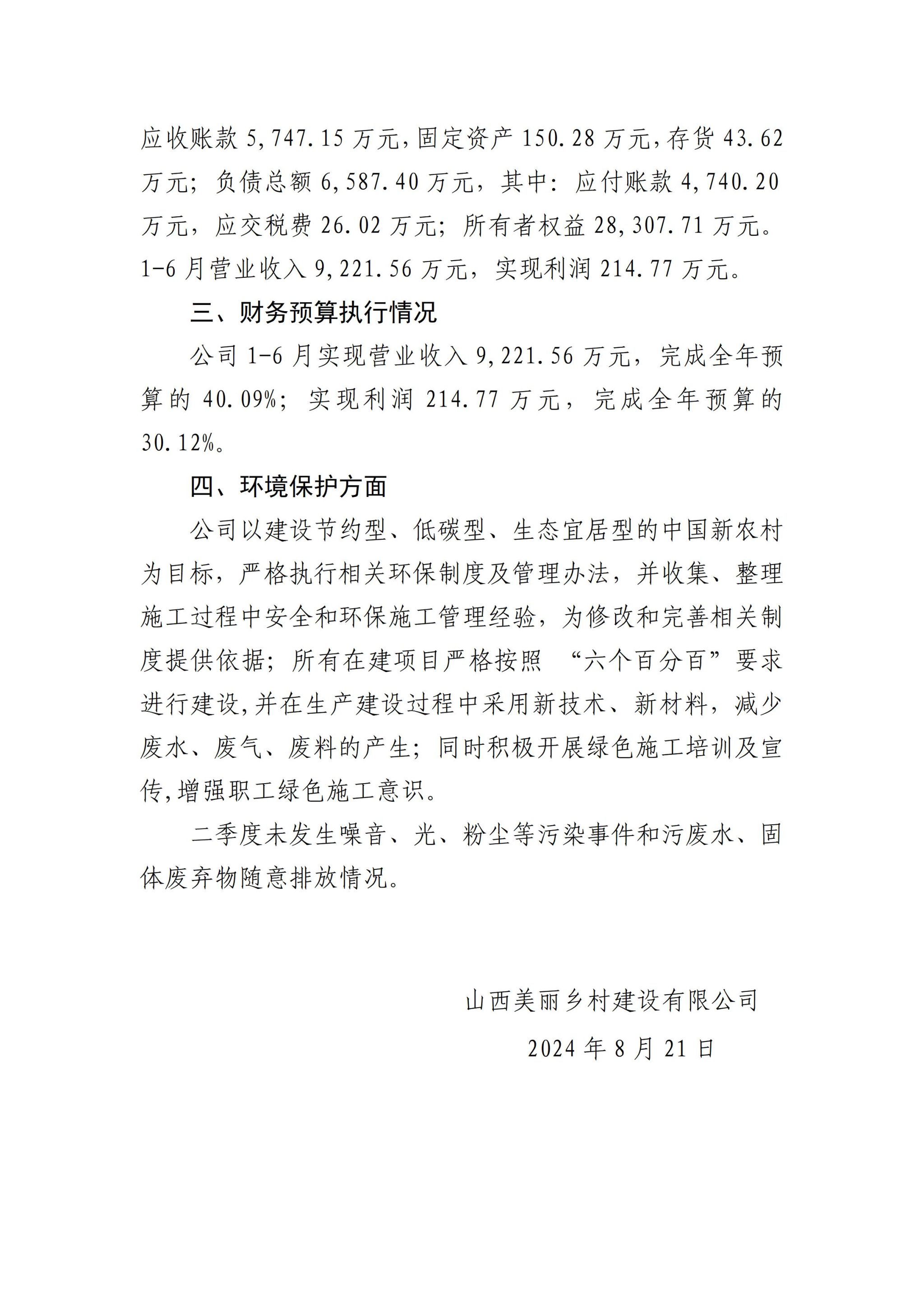 山西漂亮墟落建设有限公司2024年二季度企业重大信息果真
